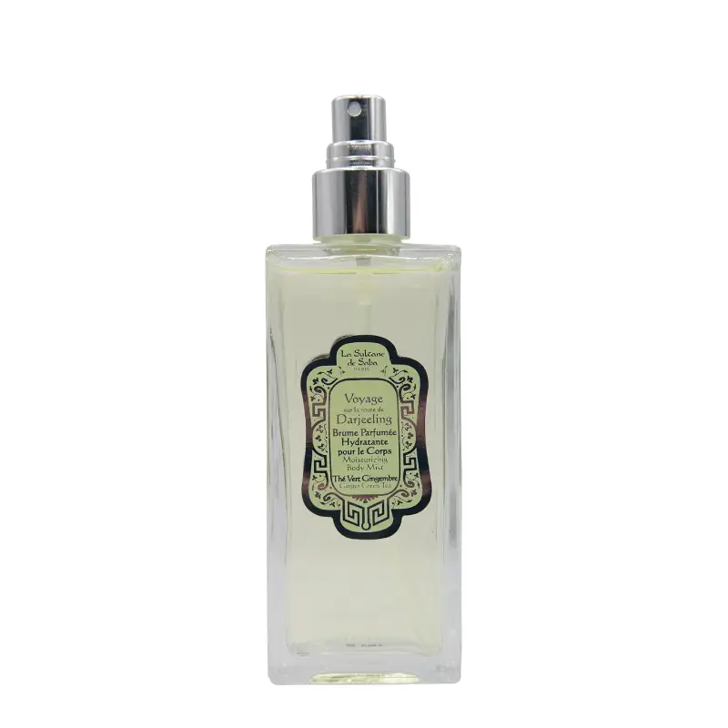 Fraîche et tonique, la Brume parfumée Voyage sur la Route de Darjeeling dépose sur votre peau et/ou votre chevelure une pellicule aqueuse subtile et fine, permettant d’hydrater et de parfumer en même temps. Avec ses notes vertes et fraîches comme les célèbres plantations des pieds de l’Himalaya, votre expérience sensorielle est totalement exaltée. Pouvant être utilisée en complément de votre parfum ou pour renforcer votre sillage toute la journée, elle apporte une sensation immédiate de bien-être et de fraicheur, vous transportant ainsi au sein des trésors sensoriels de La Sultane de Saba.
