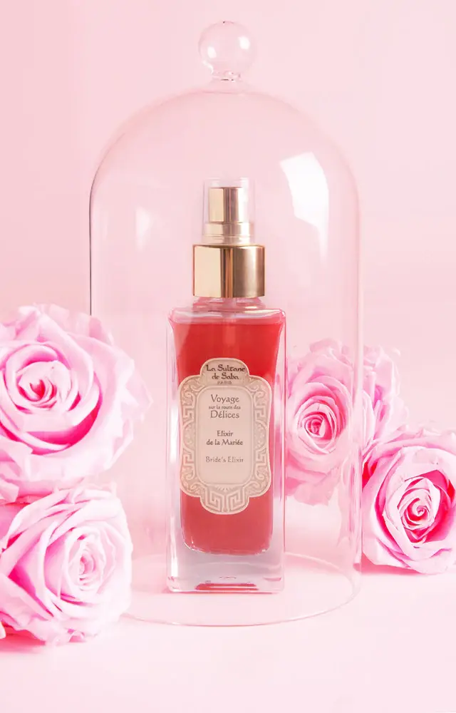 Elixir de la Mariée : AQUA (WATER), PARFUM (FRAGRANCE), LINALOOL, CITRONELLOL, GERANIOL, POTASSIUM SORBATE, SODIUM BENZOATE, CI 75470 (CARMINE), MALTODEXTRIN, CINNAMYL ALCOHOL, LIMONENE, EUGENOL, CITRAL – format: 50 ml