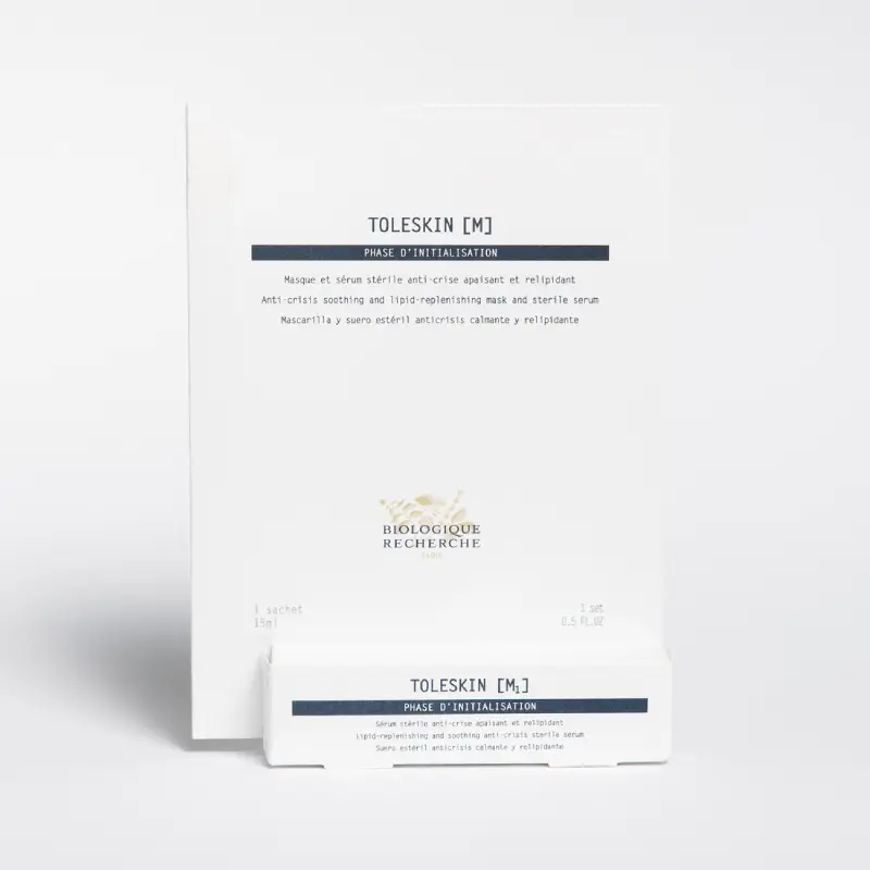 Découvrez le Masque Toleskin M de Biologique Recherche, le masque anti réaction cutanée. Formule spécifique alliant des extraits végétaux de pois de cœur pour ses bienfaits apaisant, à un complexe régénérant et relipidant permettant de limiter la perte naturelle d’eau de votre peau et de la nourrir en profondeur afin de renforcer votre barrière cutanée. Plus saine votre peau est renforcée et protégée des agressions extérieures au quotidien.